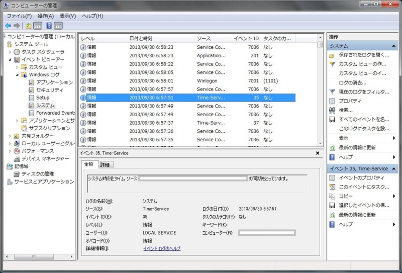 システムログで、以下のイベントIDを確認します。