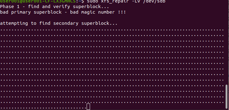 $ sudo xfs_repair -Lv /dev/sdb